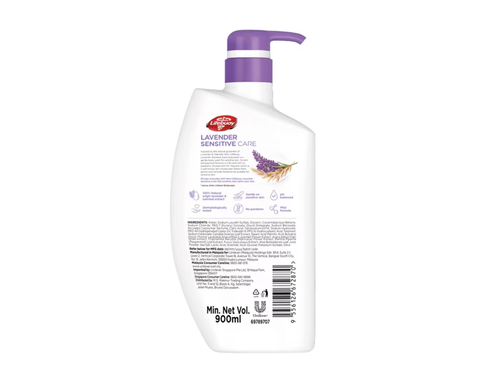 Lifebuoy Bodywash Sensitive Care Lavender is crafted to provide antibacterial protection while being gentle on sensitive skin. Infused with natural lavender extracts, it soothes irritation and promotes calmness during your shower routine. The body wash contains Activ Silver+ Formula, which eliminates 99.9% of germs, ensuring complete hygiene. Its mild, pH-balanced formula is dermatologically tested and suitable for all skin types, including sensitive skin. With a soft lavender fragrance, this shower gel leaves you feeling clean, refreshed, and relaxed. The formula provides a perfect balance between protection and gentle care.